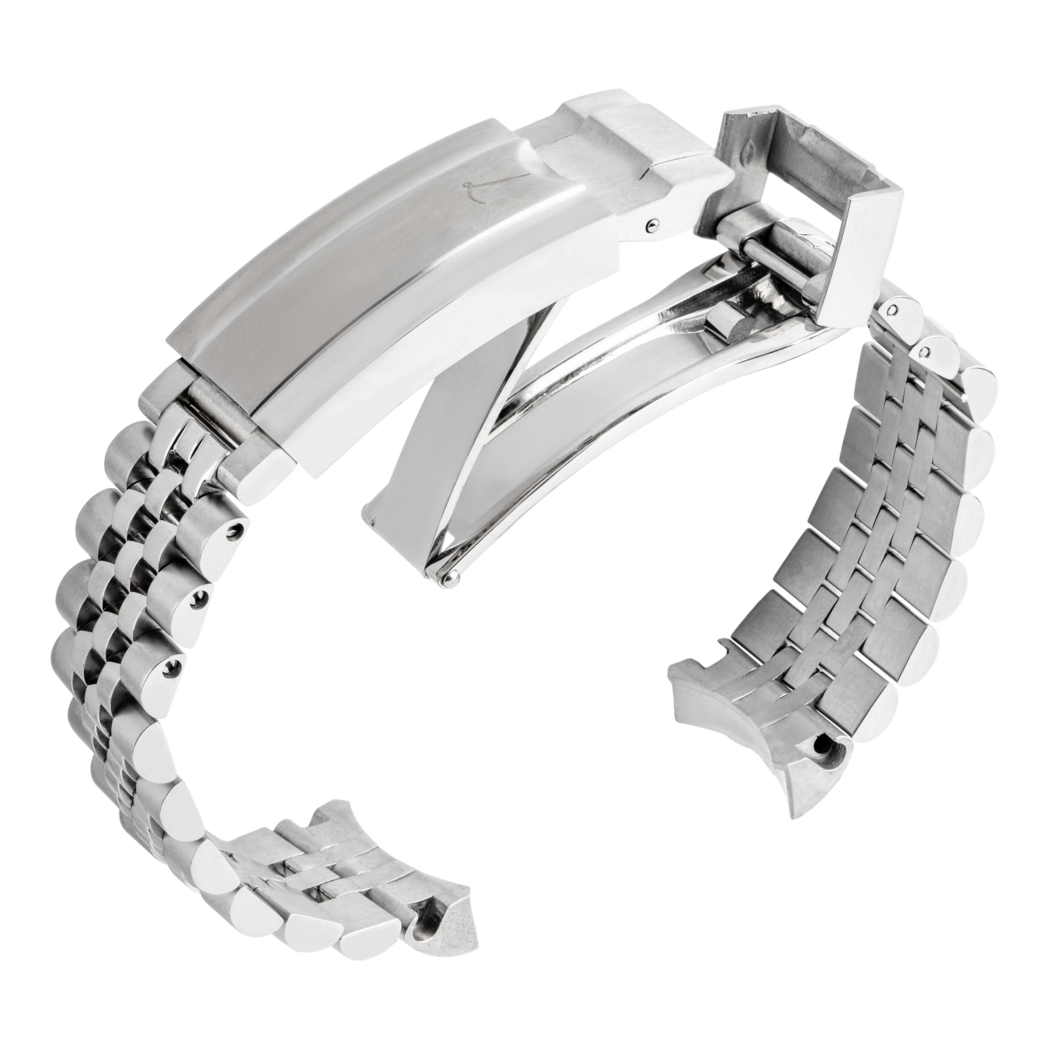 The triple deployant is one of the most complex types of clasp. With a single folding arm inside the bracelet and an overhanging plate positioned on the outer side of the bracelet that attaches to the folding part to lock it all into place for an extra layer of security.