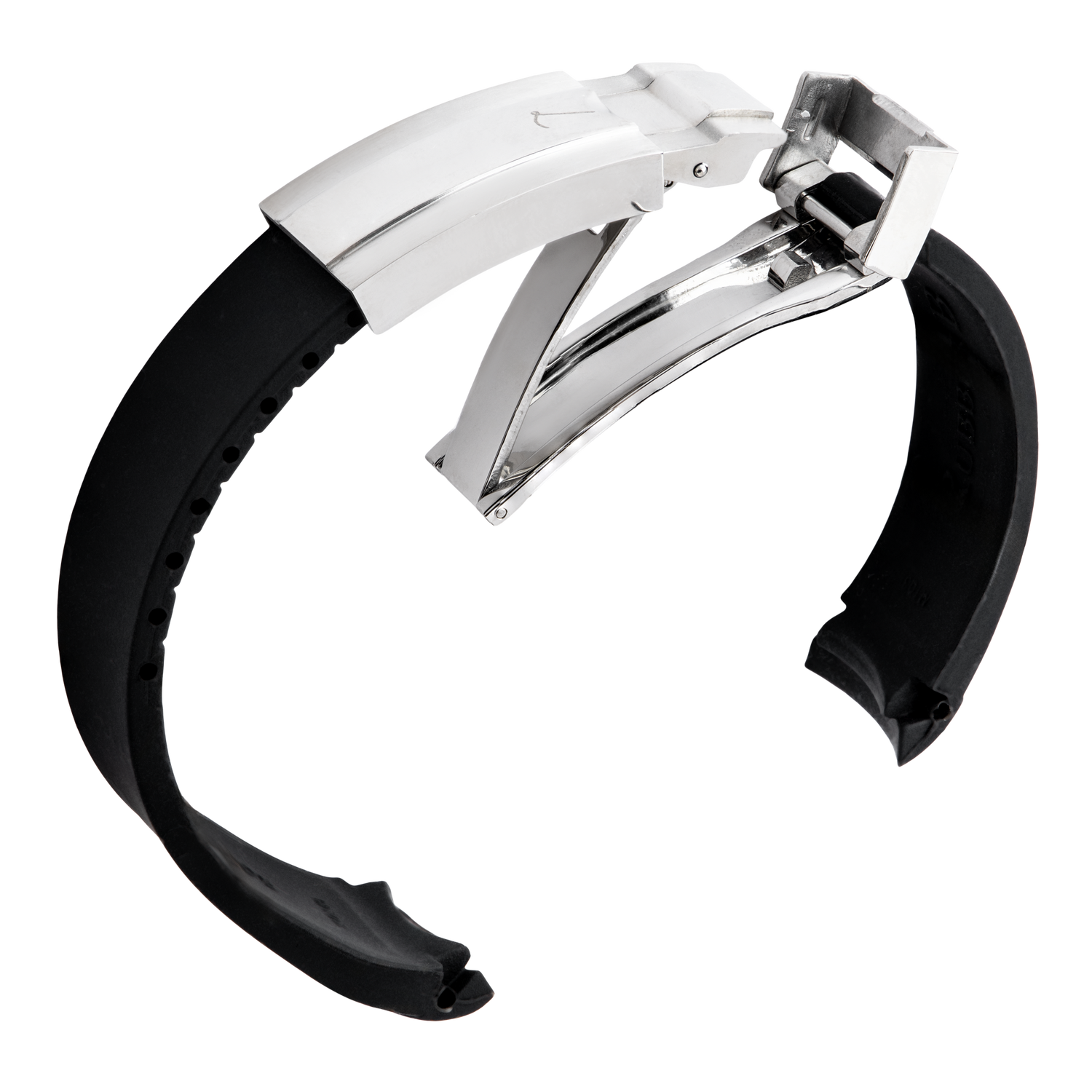The triple deployant is one of the most complex types of clasp. With a single folding arm inside the strap and an overhanging plate positioned on the outer side of the strap that attaches to the folding part to lock it all into place for an extra layer of security.